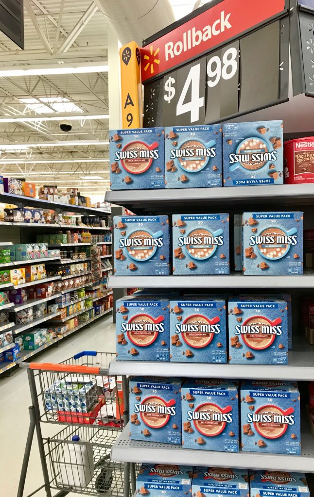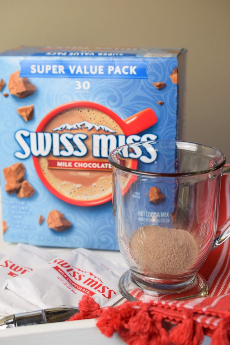 You may already have a package in your pantry. If not, I purchased a convenient 30 ct. box of Swiss Miss Milk Chocolate Hot Cocoa Mix Envelopes at my local Walmart store.